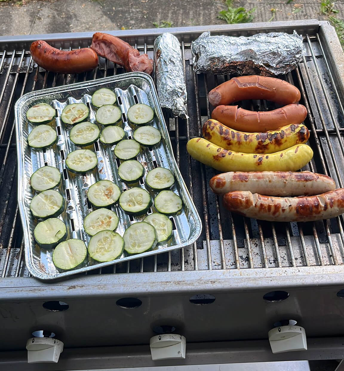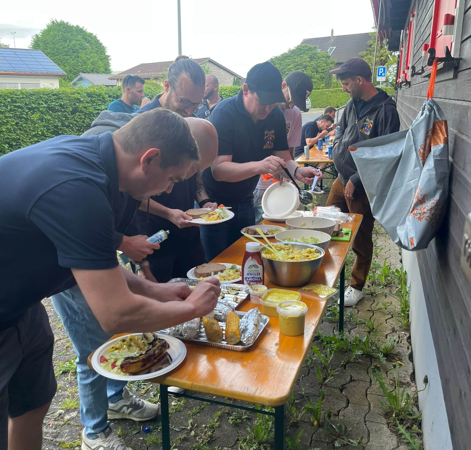 Nach einer Apéro, der eher einem Marathon als einem Warm-up glich, geschah endlich das, nachdem sich alle gesehnt hatten. Der Grill wurde angeschmissen: Fleisch brutzelte, Beilagen kochten und die Vorräte verschwanden schneller als das Budget für die Vereinsreise. Es herrschte rundum eine gute Stimmung, die nicht mal durch die gewohnte Altlastendiskussion getrübt werden konnte: die Homepage, so alt wie manche Mitglieder.